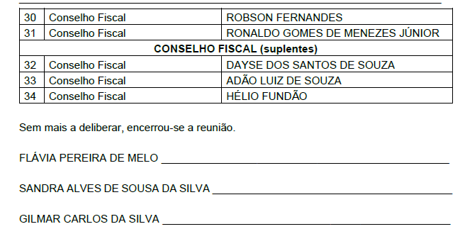 Às 11h, de 20 de março de 2026, para tratar das eleições da Diretoria Colegiada e do Conselho Fiscal do Sindicato dos Petroleiros do Espírito Santo – SINDIPETRO-ES, reuniram-se os membros eleitos da Comissão Eleitoral – 2026: FLÁVIA PEREIRA DE MELO, GILMAR CARLOS DA SILVA e SANDRA ALVES DE SOUSA DA SILVA.